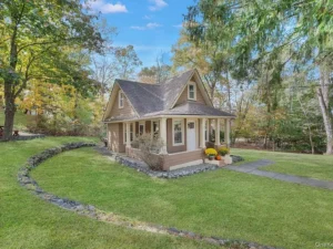 Welcome to “Serenity Cottage,” a charming wood-shake-sided retreat set on nearly an acre of peaceful land surrounded by classic stone walls. This 1-bedroom, 1-bath home offers timeless charm and comfort, featuring a wraparound front porch perfect for morning coffee or quiet evenings outdoors. Inside, the open-concept layout includes an updated kitchen that flows seamlessly into the living area, along with a cozy den featuring a wood-burning fireplace.