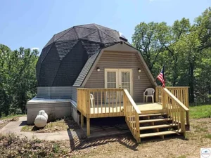 This one-of-a-kind geodesic dome home sits on 15 wooded acres inside a gated community with access to multiple fishing lakes, boat launches to Lake of the Ozarks, and recreational amenities. The 3-bedroom, 2-bath layout features an open interior where each space flows naturally, highlighted by the soaring dome ceiling that creates an immersive, nature-connected feel. A full mudroom bath is located in the unfinished walkout basement, offering room to expand or customize to your needs.